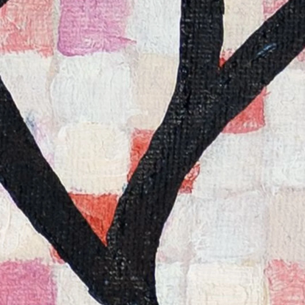 "Generations" addresses the transmission of cultural knowledge across time, examining how patterns and symbols evolve while maintaining connections to their origins. Three flowers, akin to the proverbial stages of human life, intertwine with each other. The work can be read as a visual meditation on heritage, memory, and the dynamic nature of cultural identity. By juxtaposing structured pattern elements with more fluid, intuitive marks, Gil creates a visual dialogue between collective memory and personal expression.